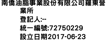新北市三重區中正北路317巷27號南僑油脂事業股份有限公司羅東營業所-統編:72750229