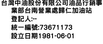 台灣中油股份有限公司油品行銷事業部台南營業處歸仁加油站