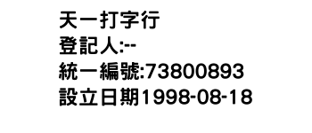 統一編號:73800893