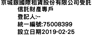 新北市中和區福和里中山路2段133號12樓之1京城銀國際租賃股份有限公司受託信託財產專戶-統編:75008399