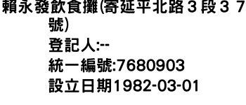 賴永發飲食攤(寄延平北路3段37號)