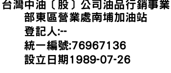 台灣中油〔股〕公司油品行銷事業部東區營業處南埔加油站