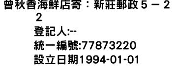 曾秋香海鮮店寄:新莊郵政5-22