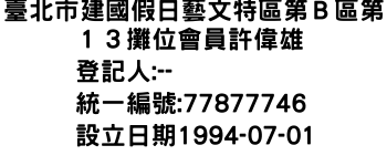 臺北市建國假日藝文特區第B區第13攤位會員許偉雄