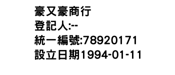 統一編號:78920171