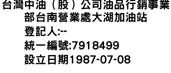 台灣中油(股)公司油品行銷事業部台南營業處大湖加油站