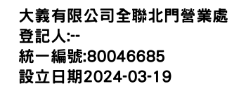 統一編號:80046685