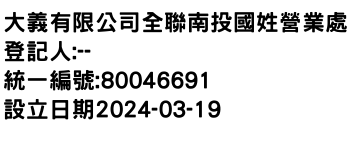 大義有限公司全聯南投國姓營業處
