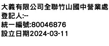 大義有限公司全聯竹山國中營業處