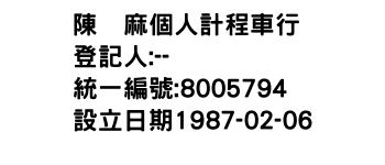 陳炉麻個人計程車行