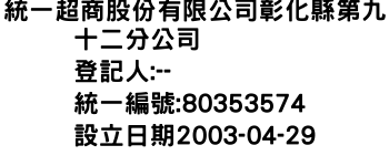 統一超商股份有限公司彰化縣第九十二分公司