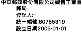 臺中市大雅區橫山里中科路6號中華郵政股份有限公司新莊副都心郵局-統編:02926153