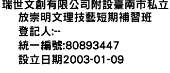 瑞世文創有限公司附設臺南市私立放崇明文理技藝短期補習班