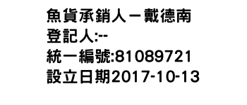 臺北市萬華區萬大路531號魚貨承銷人-蔣承助-統編:00857319