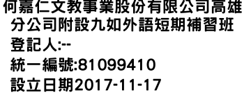 何嘉仁文教事業股份有限公司高雄分公司附設九如外語短期補習班