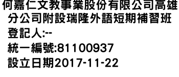 何嘉仁文教事業股份有限公司高雄分公司附設瑞隆外語短期補習班