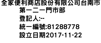 全家便利商店股份有限公司台南市第一二一門市部