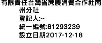 臺北市松山區敦化里八德路3段2號4樓之2有限責任台灣省蔗農消費合作社南州分社-統編:81293239