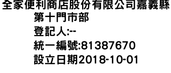 全家便利商店股份有限公司嘉義縣第十門市部
