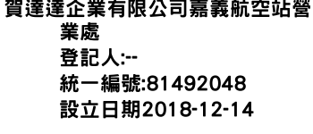 賀達達企業有限公司嘉義航空站營業處