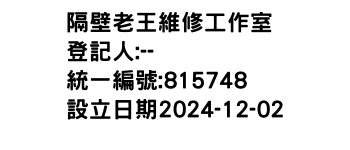 苗栗縣苗栗市嘉盛里018鄰嘉盛街161號隔壁老王維修工作室-統編:00815748