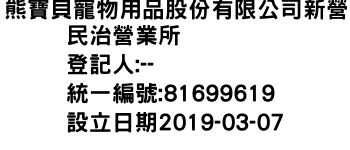 熊寶貝寵物用品股份有限公司新營民治營業所