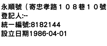 永順號(寄忠孝路108巷10號