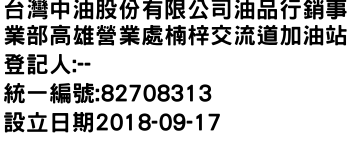 桃園市桃園區龍安里002鄰大興西路三段790號台灣中油股份有限公司油品行銷事業部高雄營業處楠梓交流道加油站-統編:82708313