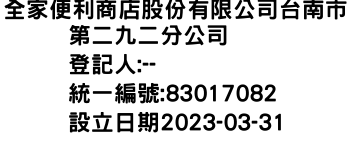 全家便利商店股份有限公司台南市第二九二分公司