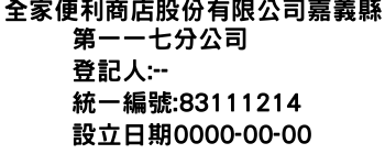 全家便利商店股份有限公司嘉義縣第一一七分公司