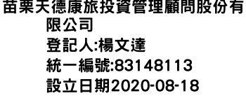 苗栗天德康旅投資管理顧問股份有限公司