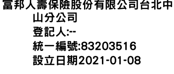 富邦人壽保險股份有限公司台北中山分公司異地辦公-統編:00513820