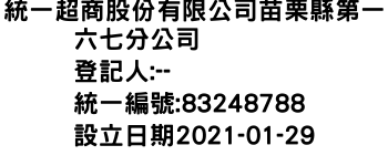統一超商股份有限公司苗栗縣第一六七分公司