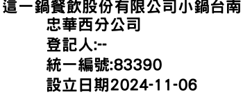 這一鍋餐飲股份有限公司小鍋台南忠華西分公司