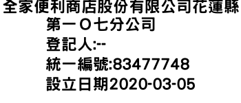 全家便利商店股份有限公司花蓮縣第一O七分公司