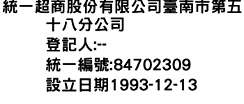 統一超商股份有限公司臺南市第五十八分公司