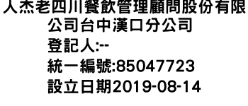 人杰老四川餐飲管理顧問股份有限公司台中漢口分公司