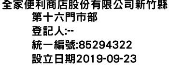 全家便利商店股份有限公司新竹縣第十六門市部