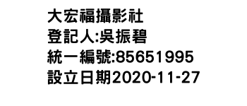 臺南市東 區復興里富農街1段268巷13號同鴻攝影社-統編:95159177