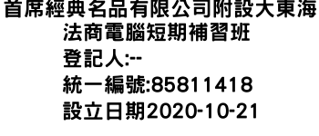 首席經典名品有限公司附設大東海法商電腦短期補習班