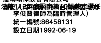 登記人:李俊賢律師(台灣高雄地方法院112年度司字第10號裁定選任李俊賢律師為臨時管理人)