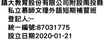 鎮大教育股份有限公司附設南投縣私立慕師文理外語短期補習班