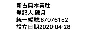 臺南市柳營區人和里柳營路三段410號1樓新古典木業社-統編:87076152