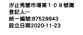 汐止秀豐市場第108號攤