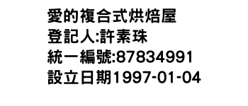 艾菈烘焙坊-統編:00288653