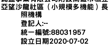 錫盛事業有限公司附設高雄市私立亞望沙龍社區(小規模多機能)長照機構