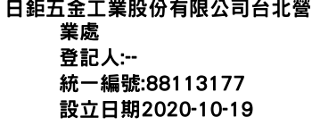 臺中市南屯區春社里永春路62之12號1樓日鉅五金工業股份有限公司台北營業處-統編:88113177
