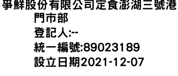 爭鮮股份有限公司定食澎湖三號港門市部