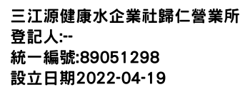 南投縣埔里鎮西門里中正二路102號1樓三江源健康水企業社歸仁營業所-統編:89051298