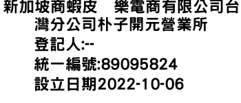 新加坡商蝦皮娯樂電商有限公司台灣分公司朴子開元營業所